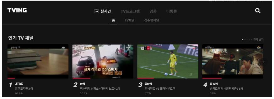 2. 티빙(TVING) 실시간TV보기 |