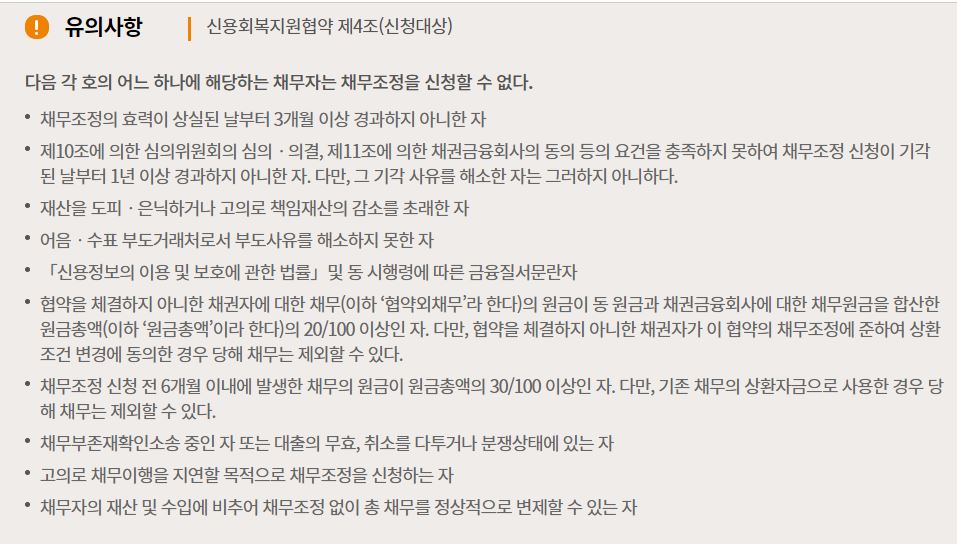 - 기타 신용회복지원협약상 조정이 제한되는 채무